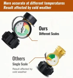 100% BRASS MADE –Propane cylinder gauges is CSA certificated. Heavy duty 100% solid brass construction withstands weather, scratching, denting and corroding, providing secure, air-tight connection between propane cylinder. Just add it into cart, lp tank gauge will be a good accessory that supports you to monitor your gas level in real time!