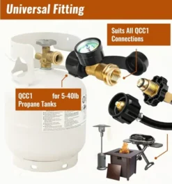 US standard QCC-1 interface, universal connection. Ideal for gas grills, heaters, smokers, camping stoves, lanterns, tabletop grills, fireplaces