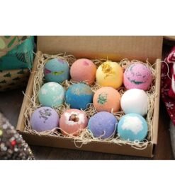 12 uniquely handcrafted bath bombs. Functional and relaxing. Great Mothers day gifts.