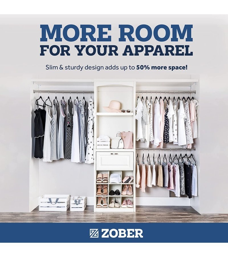 Forget about snagging. damaging. or falling garments – Zober’s velvet hangers can hang nearly any piece of clothing by utilizing a design with soft-cut notches. |
